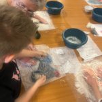Tijdens de workshops ontdekten de leerlingen hoe je van losse wol stap voor stap een eigen kunstwerk kunt maken. Door te kneden, rollen en werken met water en zeep ontstonden kleurrijke en unieke viltwerken. Voor veel leerlingen was dit een eerste kennismaking met vilten als techniek, wat zorgde voor nieuwsgierigheid, concentratie en zichtbaar plezier.