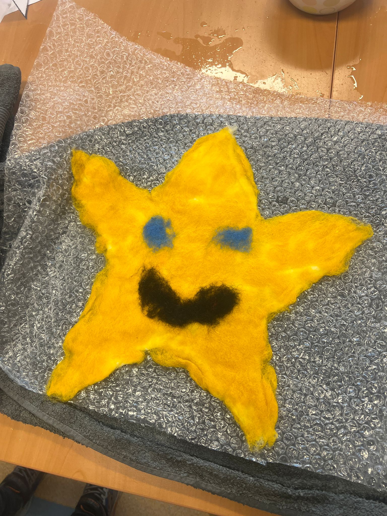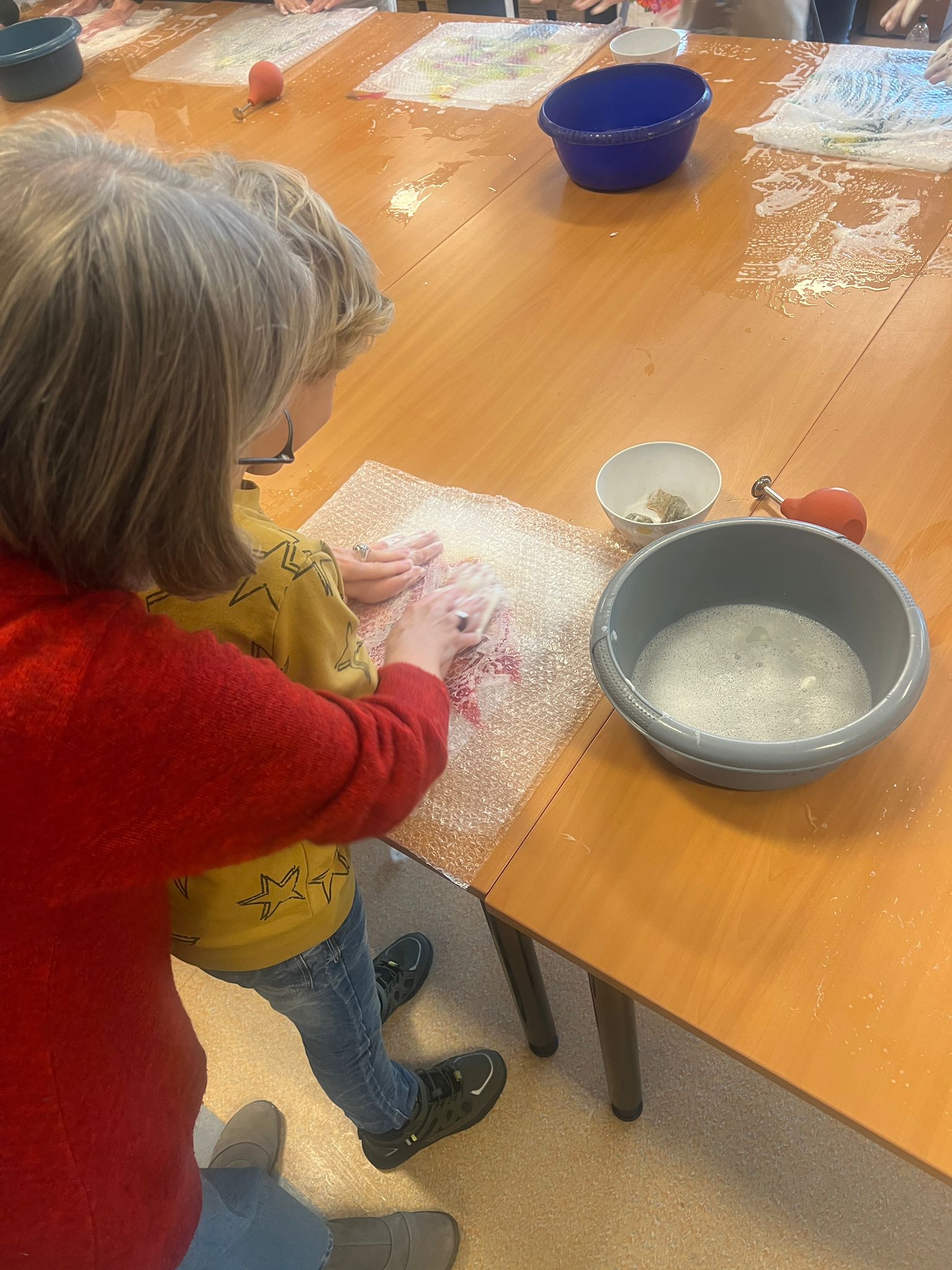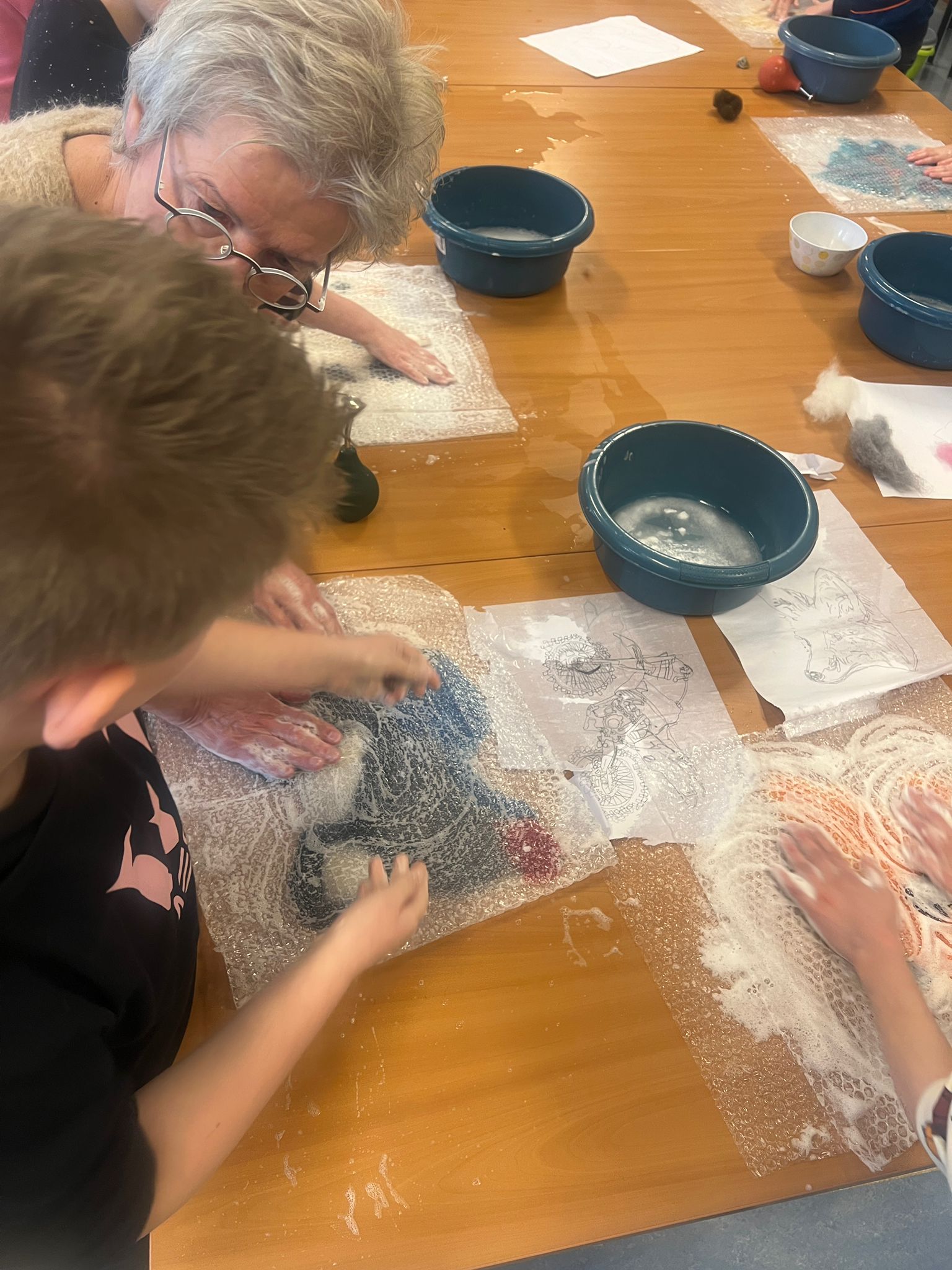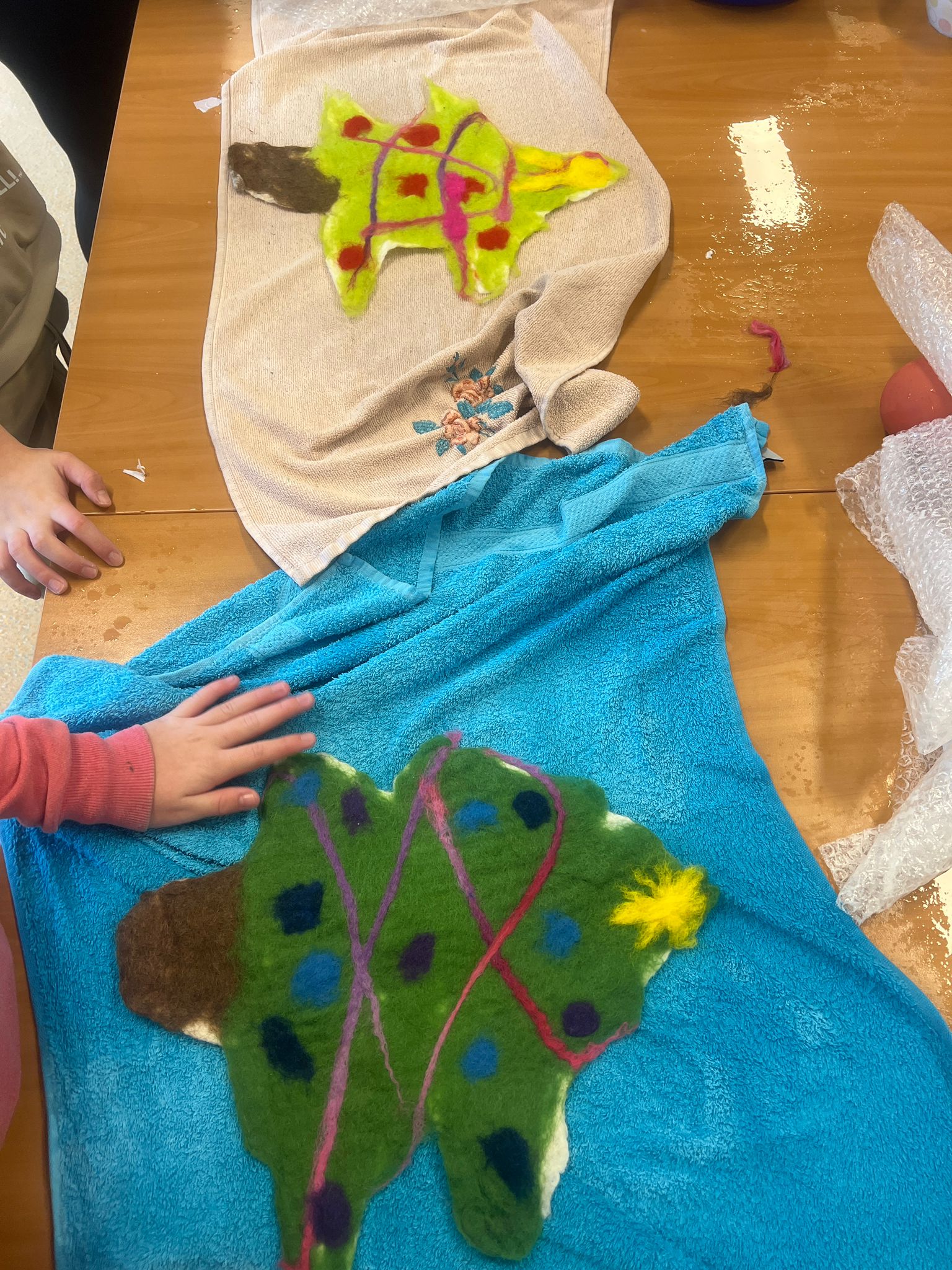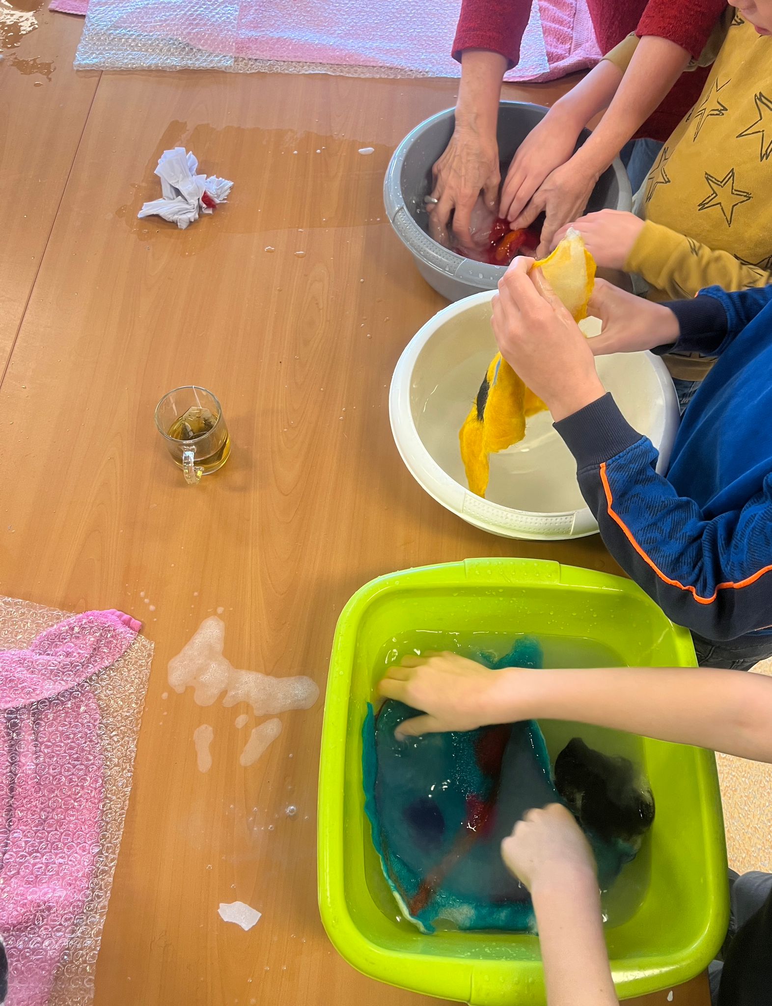 Tijdens de workshops ontdekten de leerlingen hoe je van losse wol stap voor stap een eigen kunstwerk kunt maken. Door te kneden, rollen en werken met water en zeep ontstonden kleurrijke en unieke viltwerken. Voor veel leerlingen was dit een eerste kennismaking met vilten als techniek, wat zorgde voor nieuwsgierigheid, concentratie en zichtbaar plezier.